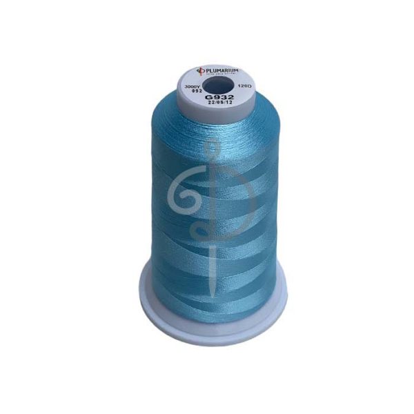 Hilo de Bordar color Azul 100% Poliéster, Calibre 120, 3.000 yardas. El Hilo de poliéster es ideal para la confección de bordados, principalmente por la estabilidad del color y su resistencia al cloro.