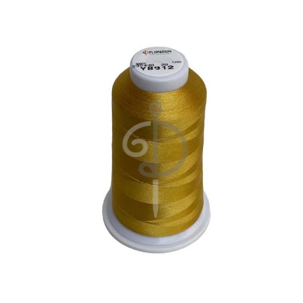 Hilo de Bordar color Dorado 100% Poliéster, Calibre 120, 3.000 yardas. El Hilo de poliéster es ideal para la confección de bordados, principalmente por la estabilidad del color y su resistencia al cloro.