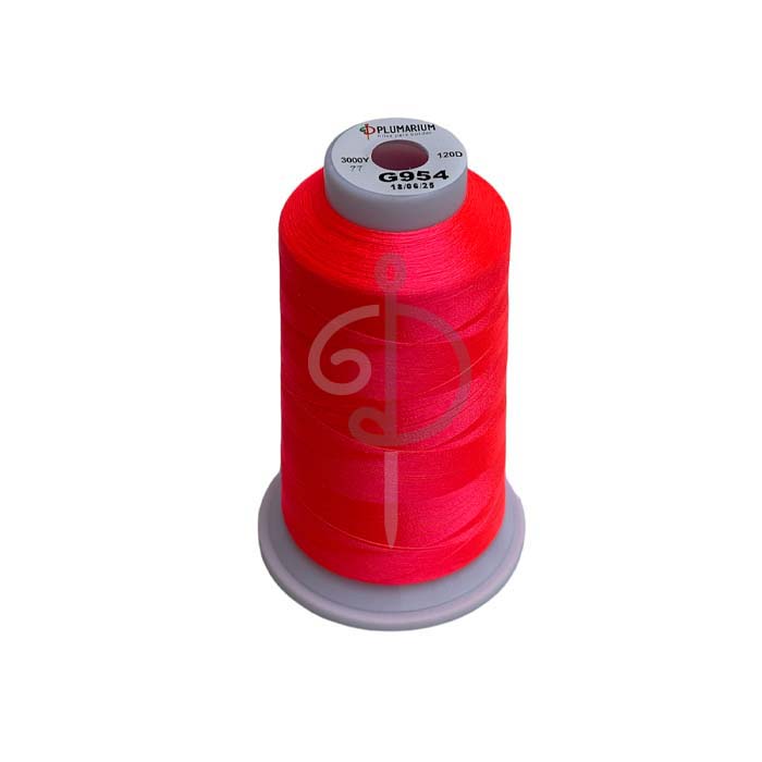 Hilo de Bordar color Naranja Neón 100% Poliéster, Calibre 120, 3.000 yardas. El Hilo de poliéster es ideal para la confección de bordados, principalmente por la estabilidad del color y su resistencia al cloro.