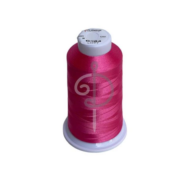 Hilo de Bordar color Rosado 100% poliéster, Calibre 120, 3.000 yardas. El Hilo de poliéster es ideal para la confección de bordados, principalmente por la estabilidad del color y su resistencia al cloro.