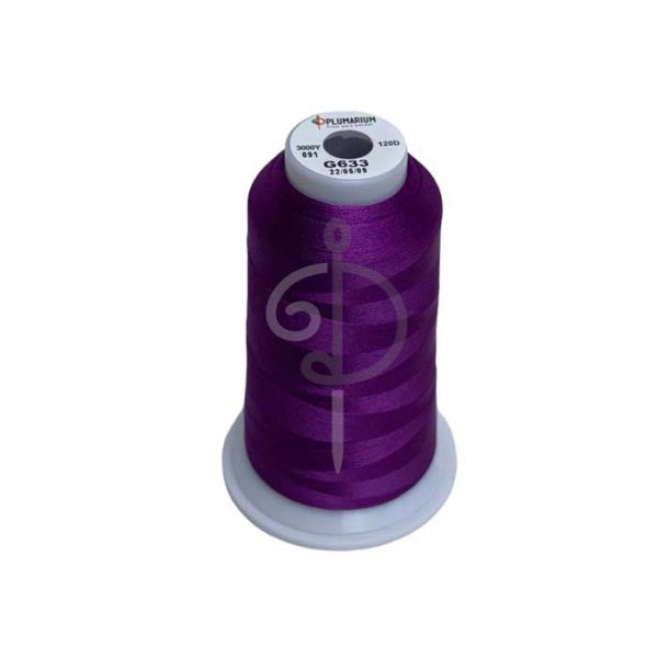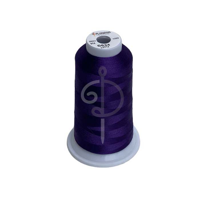 Hilo de Bordar color Violeta 100% Poliéster, Calibre 120, 3.000 yardas. El Hilo de poliéster es ideal para la confección de bordados, principalmente por la estabilidad del color y su resistencia al cloro.